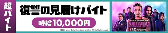 今回の超バイト企画では2025年8月7日(木)にTOHOシネマズ六本木にて行われる、映画『バレリーナ:The World of John Wick』のイベントにて、復讐の見届けをしていただく超バイトを募集します。就業後には映画オリジナルグッズプレゼントの豪華特典も。映画が好きな方、ハリウッドスターのお手伝いをしたい方など、たくさんのご応募お待ちしています。