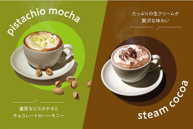 寒い冬にぴったりなドリンクが新登場しました。一番のおすすめは飲んだ瞬間ふわっとピスタチオが香る「ピスタチオモカ」。ピスタチオソースとフレーク、どちらも使うことでピスタチオの香りを存分に楽しんでもらえるようこだわっています。カフェスタッフが中心となって、デザート感覚で味わえるドリンクに仕上げました。
