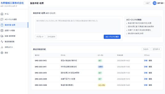 - 製造現場の業務に特化したAIエージェント製造現場の業務効率化に特化した専用AIエージェントを提供します。それら業務の現場特性を熟知した当社だからこそ提供できる、実用的かつ効果的な自動化ソリューションです。