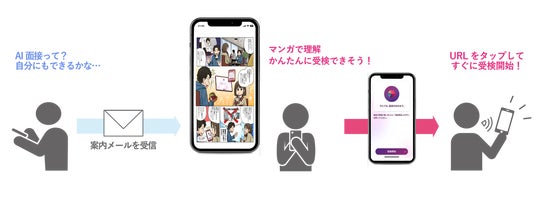 面接の進め方や所要時間、操作の簡単さ、スキマ時間の活用などをイラストでわかりやすく伝えることで、「AI面接=難しそう」「緊張しそう」といったイメージをやわらげます。