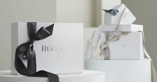 バイヤーが厳選したトレンドの商品を詰め込み、HYACCA独自のボックスを上質なリボンで包み込み、大切なあなたのお相手にお届けします。
