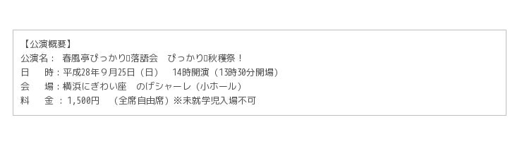 春風亭ぴっかり✩落語会「ぴっかり✩秋穫祭!」