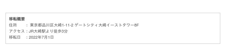 本社所在地:東京都品川区大崎1-11-2 ゲートシティ大崎イーストタワー8F