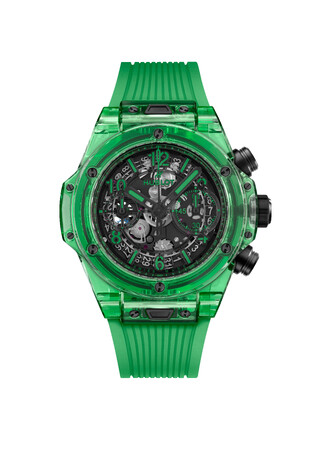 新モデル「ビッグ・バン ウニコ グリーン SAXEM」は、ウブロのイノベーションの数々を浮き彫りにしています。SAXEMの42mm径のケースは、まるで光を発しているかのような錯覚をもたらします。