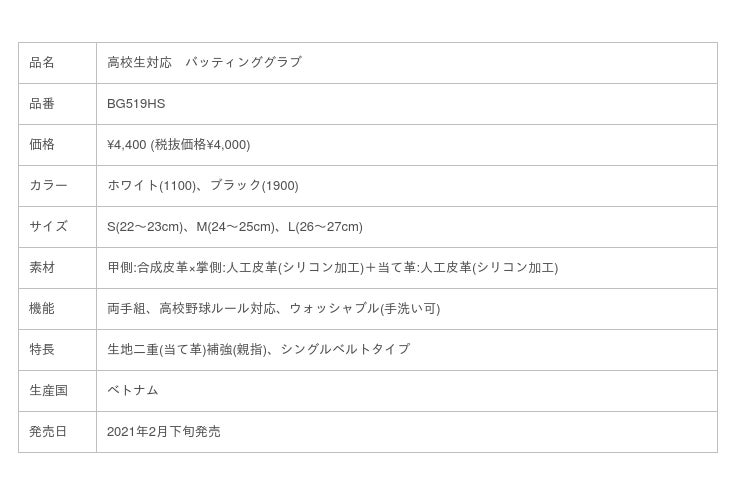 「ベースボールを科学する。」ゼット株式会社(本社/大阪市天王寺区、代表取締役社長/渡辺裕之)は、高いグリップ力と耐久性を両立させたノンスリップタイプ【高校生対応バッティンググラブ BG519HS】を発売しました。