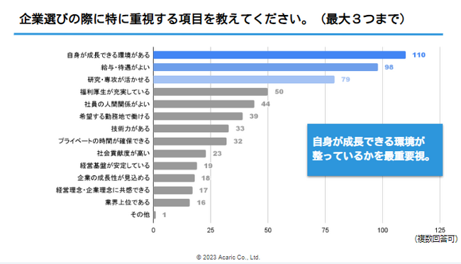 企業選びにおいて「自身が成長できる環境」を最も重要視