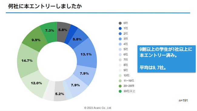 理系学生の9割以上が本エントリー済み。1人あたり平均9.7社