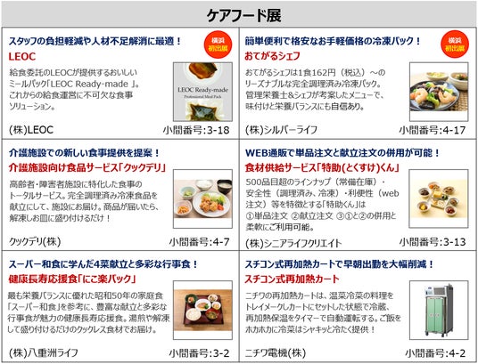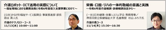 本展では、業界の第一線で活躍する専門家を講師に迎えた「専門セミナー」を同時開催する。介護のテクノロジーコースでは、かながわ福祉サービス振興会 得永真人氏が今年度応募受付中の介護ロボット・ICT導入支援事業(補助金交付等)について説明。また、介護の食コースでは、日本健康・栄養システム学会 専務理事の杉山みち子氏が栄養・口腔・リハの一体的取組を解説。その他、誤嚥を減らす嚥下指導、介護DX成功の秘訣など、介護分野の課題解決に役立つセミナーがラインナップされている。セミナー受講に必要な事前申込(無料)は公式サイトにて受付中。定員間近のセッションもあるため、早めの受講申込をおすすめする。