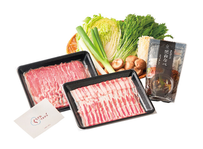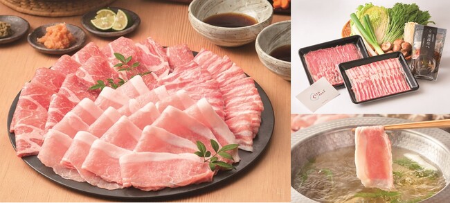 「信州十四豚と南信州野菜のしゃぶしゃぶセット」では、きめ細やかで旨味があるロース肉、旨味と甘みのバランスが良いバラ肉の2種に、季節に合わせて厳選した南信州産の野菜やきのこをセットでお届け。※野菜は季節によって品目が異なります。
