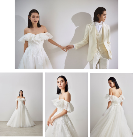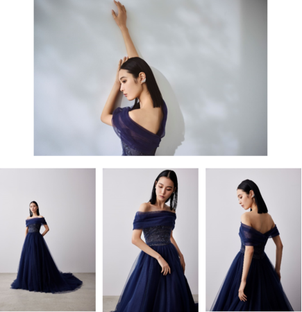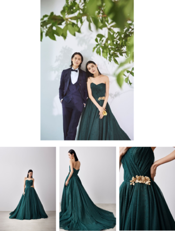 柔らかいソフトチュールを使用し、カラーの深みは残しつつ軽やかな印象との両立を叶えました。