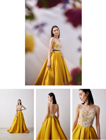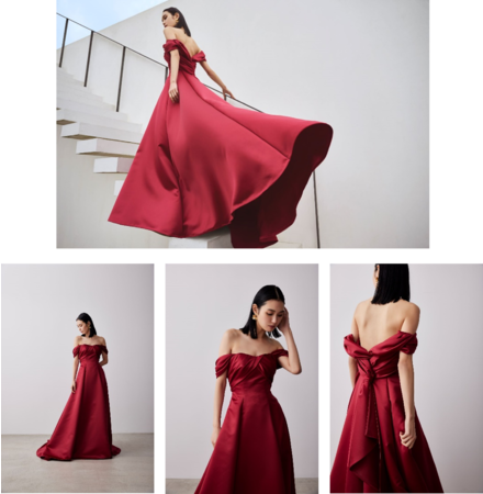 ミカドシルクを使用することでハリのある美しいシルエットが実現しました。