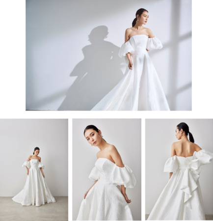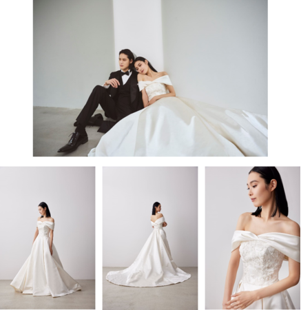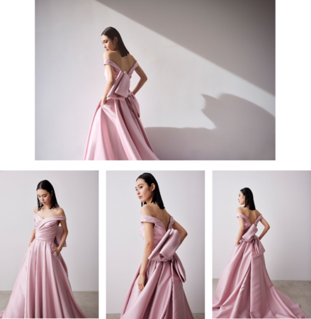 腕回りや肩先を華奢に見せ、後ろ姿も美しく見えるようなこだわりも。