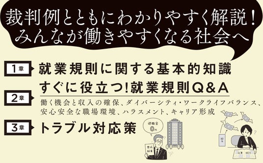 そもそも就業規則とは何か、令和だからこそ考えていかなくてはいけない最新の事情等、知っておきたい情報を網羅。また、実際の裁判事例も掲載しているため、今すぐ使える実用的な内容となっている。