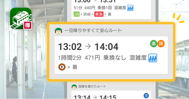 ~次の停車駅までの乗車時間が短い、一時的に降りやすいルートを提案し、安心な移動をサポートします~
