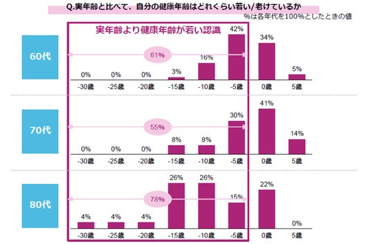 ~60代の4割以上が、自分は「実年齢マイナス5歳」と回答。フレイルチェックでは実態とのかい離が明らかに~