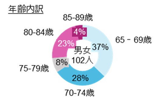 今回の調査では、65歳以上の男性71名、女性31名、計102名の方にご回答いただきました。