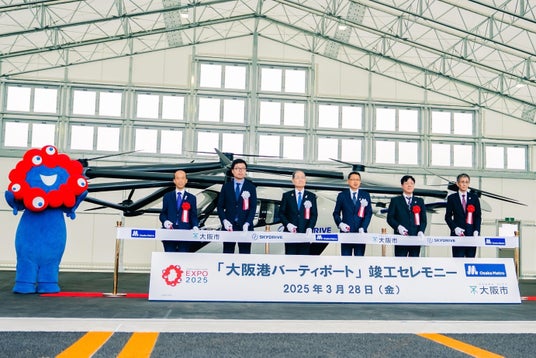 大阪市高速電気軌道株式会社(本社:大阪府大阪市、代表取締役社長 河井英明、以下「Osaka Metro」)は、2025年大阪・関西万博で株式会社SkyDrive(本社:愛知県豊田市、代表取締役CEO 福澤知浩、以下「SkyDrive」)が開発した「空飛ぶクルマ」(※1)のデモフライト時に使用する夢洲の万博会場外の離着陸場「大阪港バーティポート」が、2025年3月28日(金)に完成し、大阪市と共催で竣工セレモニーを開催したことをお知らせします。