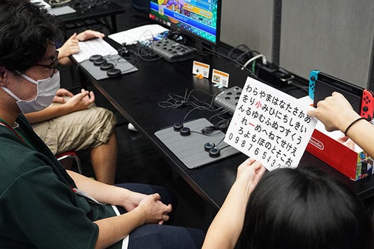 言語機能に障がいを持つ方を想定し、まばたきによる意思疎通や視線入力機器を活用しながら、eスポーツを楽しんで頂く実習