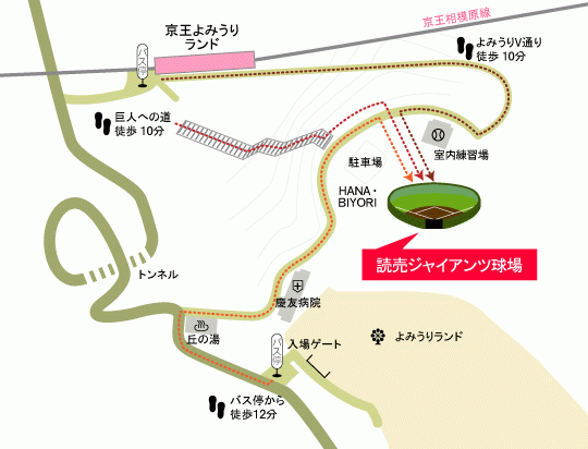京王よみうりランド駅・遊園地「よみうりランド」から球場までのシャトルバスを運行しています。
