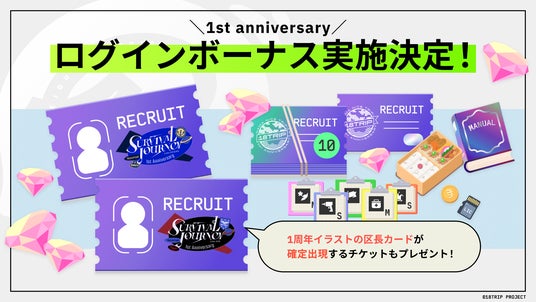 1周年イラストの区長カードが確定出現するリクルートチケットなどがもらえるログインボーナスを開催予定です。