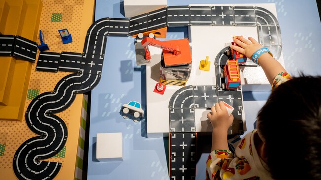 そんな「ピタゴラス」を使って体験できるのは、お家ではできないような大きな街づくり。巨大なジオラマとパーツを組み合わせて自分だけの世界を作ることができます。