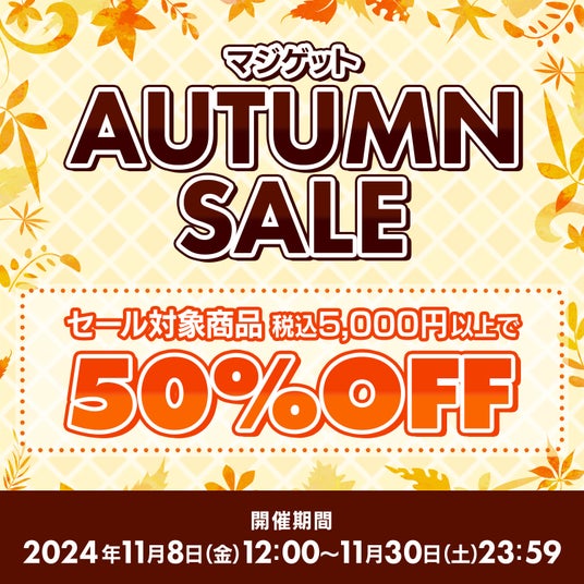 株式会社MAGES.は、キャラクターグッズ総合通販ショップ『マジゲット』にて、Autumnセールを開催中であることをお知らせいたします。