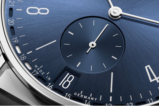 「タンジェント 2デイト」のイノベーションは、ムーブメントとデザイン両面における精密性です。2つの日付表示は、スモールセコンドダイアルの下で特に接近しており、台形の日付ウィンドウの比率を変え、 "Made in Germany“のフレーズも再配置しています。