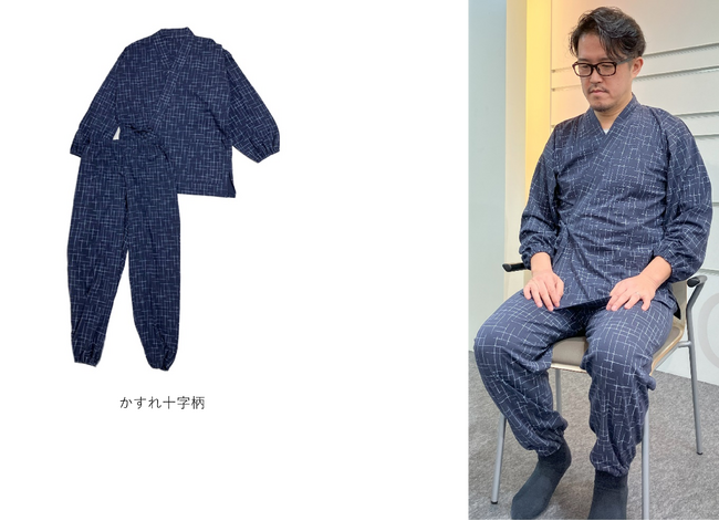 「ME KAIGO 甚平風介護パジャマ」(かすれ十字柄)