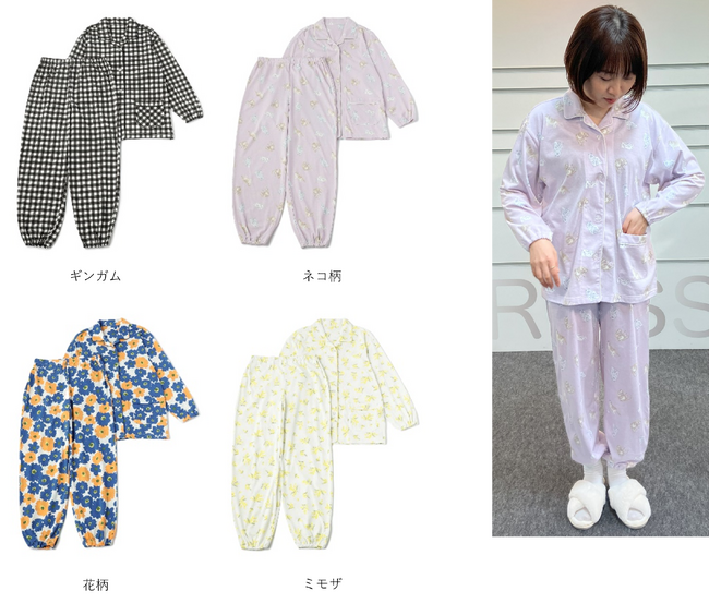 「ME KAIGO 襟付き介護パジャマ」(ギンガム、猫柄、花柄、ミモザ)