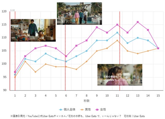 Uber Eats「花粉の季節も、Uber Eats で、いーんじゃない? 花粉」篇 Cスコアグラフ画像