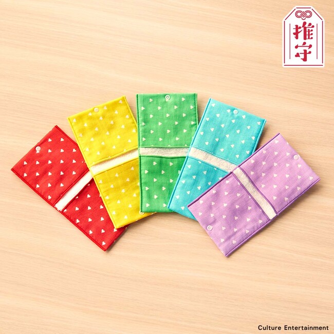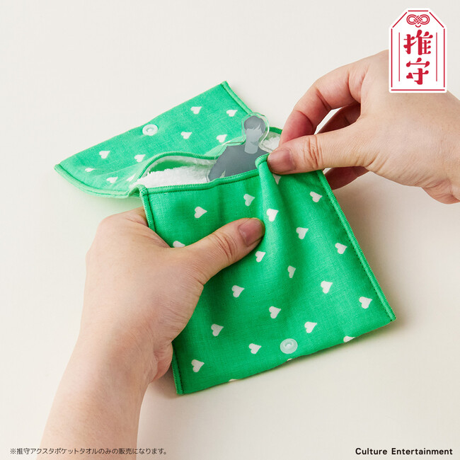 推しグッズのアクスタと一緒にお出掛けする時に大活躍!アクスタ本体と台座を別々のポケットに収納可能。ポケットの内側はマイクロファイバー素材なので、アクスタを磨くことだってできます!スナップボタンで留めればポケットから落ちる心配もありません。もちろん、普通のハンドタオルとしても使用可能。推しカラーを選べる5色展開(赤・緑・青・黄・紫)です。