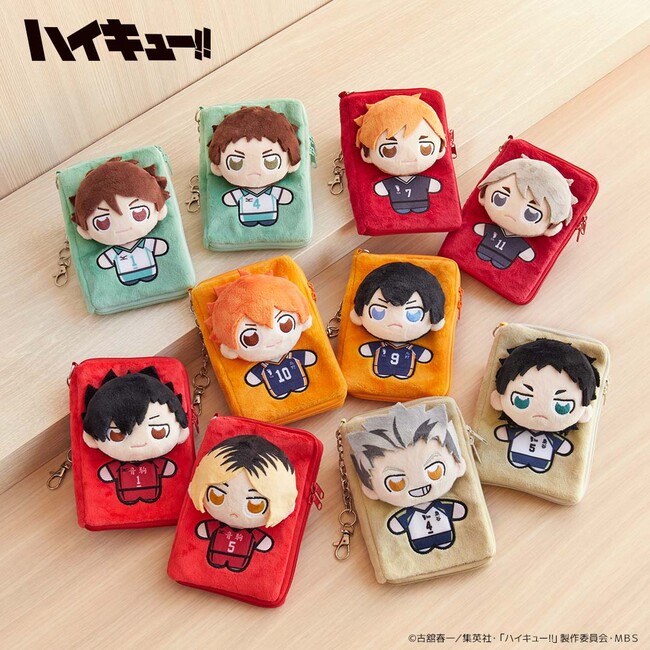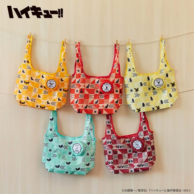 「ハイキュー!!」からは、「収納ポーチ付きエコバッグ ミニ」「チャームウォッチ」全5種、「お守 アクスタポーチ」全10種。