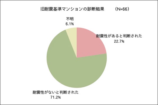 ・耐震診断を実施した旧耐震基準マンション66組合のうち、「耐震性がない」と判断されたのは71.2%(51組合)であった。