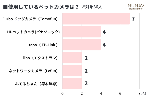 使用しているペットカメラで最も多かったのは「Furbo ドッグカメラ(Tomofun)」7人でした。
