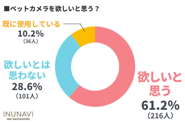 ペットカメラを「欲しいと思う」と回答した飼い主さんは61.2%でした。