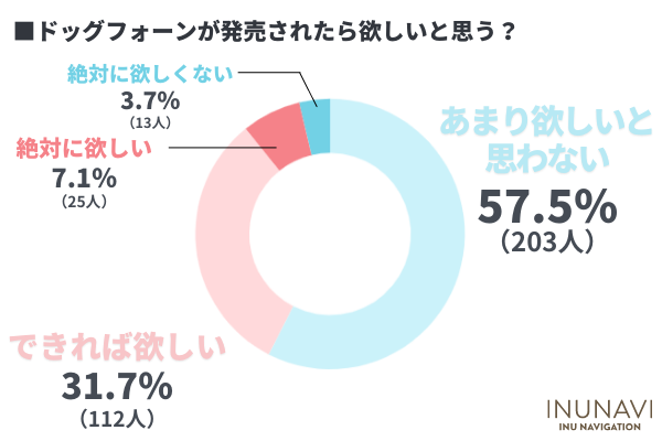 しかし、「できれば欲しい」31.7%や「絶対に欲しい」7.1%を合わせると約4割の飼い主さんはドッグフォーンに興味があるようです。