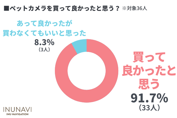 ペットカメラを「買って良かったと思う」と回答した飼い主さんは91.7%でした。