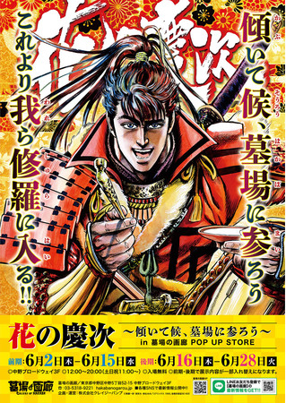 マンガ、アニメ、特撮などを始めとするサブカルチャーをテーマとした企画展を開催・運営している株式会社クレイジーバンプは6月2日(木)~6月28日(火)の期間で開催される【花の慶次~傾いて候、墓場に参ろう~in墓場の画廊POP UP STORE】(https://hakabanogarou.jp/archives/27449)にて『花の慶次』の新商品を販売いたします。