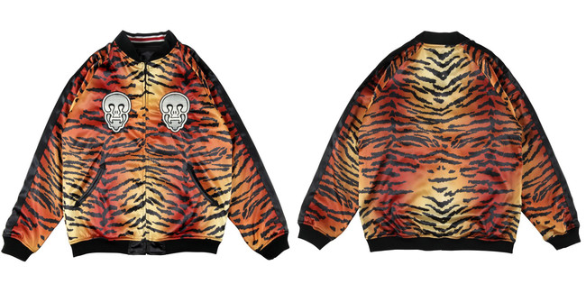 秀吉との最初の謁見の際の肩衣をイメージした虎柄、再度謁見した際の正装をイメージした柄と傾奇者であれば是非身につけたいリバーシブルスカジャン。