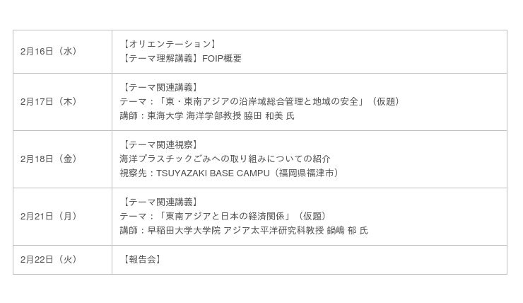 対象:シンガポール、フィリピン、ブルネイの大学生 約45名(予定)