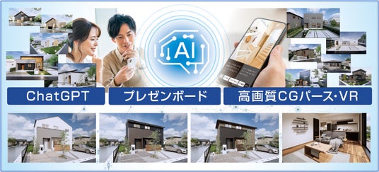施主がスマホのアンケートで予算や家族構成、こだわりなどを答えると、AIが膨大なプランのデータベースからその内容に合致するプランを選んでくれるサービスです。さらに、高品質CGやVR技術を駆使して視覚に訴えることで、提案時の演出効果が大幅にアップしました。