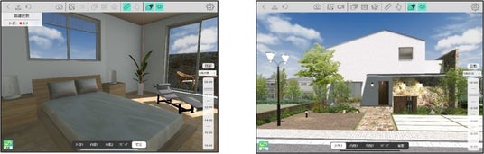 Walk in home 360x 画面イメージ (左:計測機能、右:日照シミュレーション)
