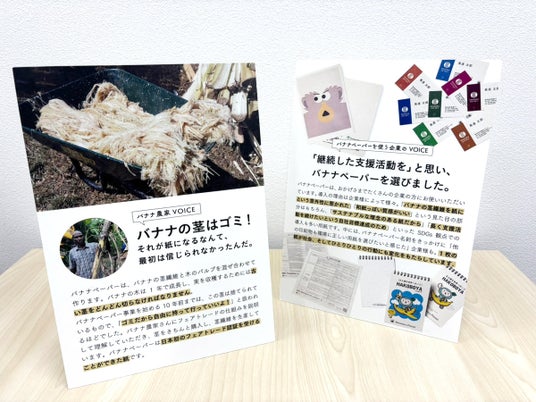 これまで、水なし印刷、ベジタブルインキやバイオマスインキといった印刷方法・インクの使用はもちろん、FSC(R)認証紙や各種アップサイクル紙、フェアトレード紙「バナナペーパー」、ゼロCO2ペーパーなど、印刷素材についても研究を重ね、取り入れてまいりました。
