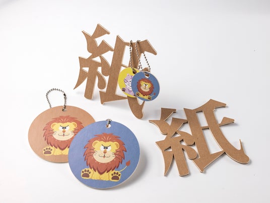 こちらは、KROMAを使ったキーホルダーです。紙とは思えない強度があるので、ノベルティ等に渡すとびっくりされることも。
