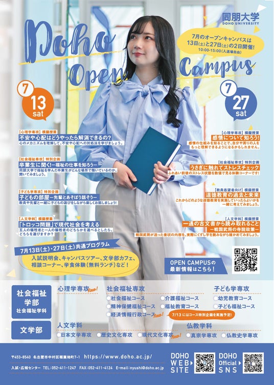 7月13日(土)開催の同朋大学オープンキャンパス特別企画の紹介。