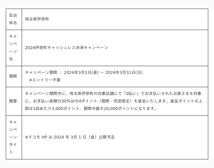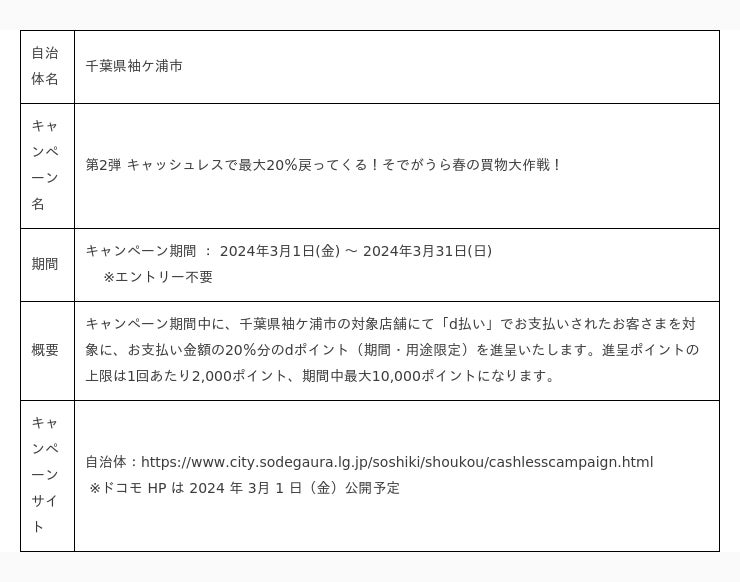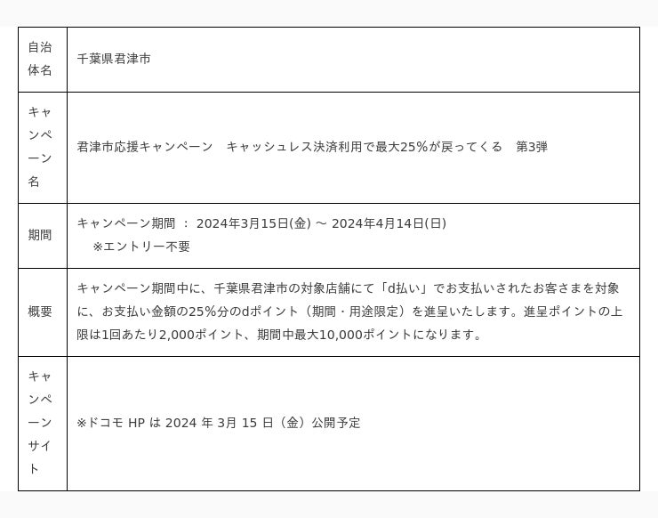 株式会社NTTドコモ(以下、ドコモ)は、全国の自治体においておトクなキャンペーンを開催いたします。詳細は、下表のとおりです。
