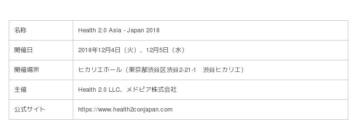 Health 2.0 Asia - Japan 2018 開催概要