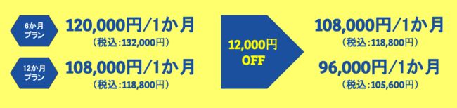 また、2021年6月末までにお申し込みいただくと、初回契約期間のご利用料金が毎月12,000円OFFとなるキャンペーンを実施しておりますのでお知らせいたします。