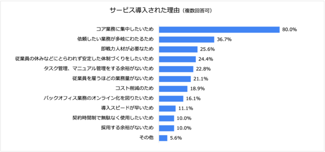 80%の企業が「コア業務に集中したいため」と回答しました。