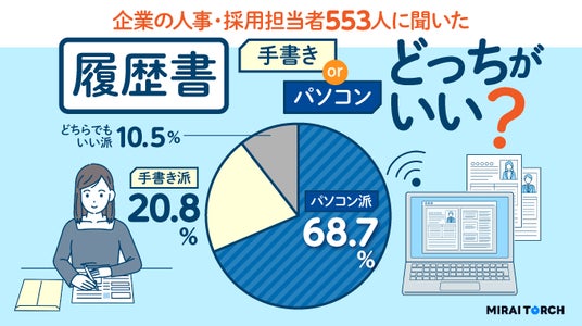 株式会社キュービック(本社:東京都新宿区、代表取締役:世一英仁)は、「履歴書は手書きとパソコン作成どちらがいいのか」について企業の人事・採用担当者553人に調査し、転職活動や新しいキャリアの選択を支援するサービス『ミライトーチ』にて公開しました。